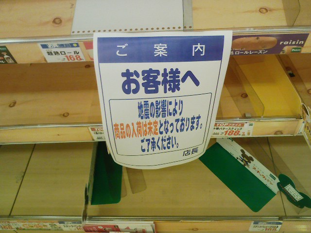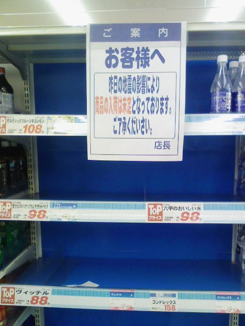 水、パン、乳製品、豆腐、魚など売り切れ状態続く