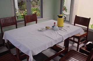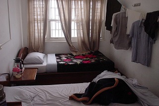1泊5ドル.水シャワー.電気は自家発電で1800からエアコン付きルームはあるが10ドルの上に電気がこない限り使えないという代物.内陸の平地だけに山から下りてくるとかなり暑い.