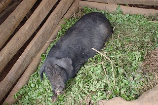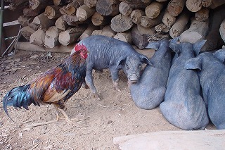お茶を干している.鶏と豚を飼育している.この付近一帯では茶ので遺産が重要な農業で安いものは1パック600K,高いものでは1200Kで売れるらしい.肝心な1パックがどれくらいの容量か聞き忘れた.