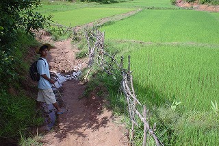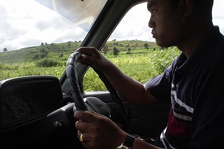 カローをミニバスで出発,マンダレーへの中継地点メッティーラで下車.カロー発0920,途中山を下りてターズィーの手前で大休止,ターズィー通過1325,メッティーラ着1400.1200K.