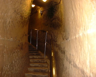 沖縄戦にて使用された地下壕.当時の手榴弾の弾痕も残っている.