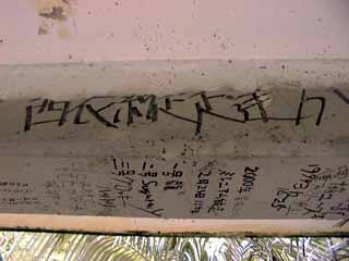 西表島、縦走路の大原寄りの展望台にて。この落書きの周囲は、縦走した記念の書き込みがずらり。