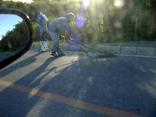 2000.8.27道の真中で捕獲作戦が遂行されていた.石垣島.