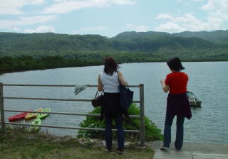 ピナイサーラ滝船浦湾から干潟を横切り、ジャングルを抜けて滝の上と下に歩いていける。滝の上からの眺めはすごい。西表島の山の魅力が盛りだくさんにおさまったコース。海を渡りジャングルを抜け、川を渡り、装備を万端にして行こう。カヌーでも途中まで行かれますが、歩いていくのもよいでしょう。ただしハブに注意。道にも迷いやすいので十分に注意すること。必ず複数人で行くこと。 ピナイサーラ滝へ行こう(歩いて) 船浦の海中道路から船浦湾の干潟へ降ります。(階段がある)干潟を渡り、ヒナイ川の河口付近に徒歩入り口があります。ここの入り口の両側には白い浮玉がかかっていますのでわかります。橋から入り口まで約20分ほどです。ここから先は両側にマングローブが生い茂る通路を進みます。同じような入り口が何ヶ所かあるので間違えないようにしましょう。 ![]() 干潮時 ![]() まだ潮が引ききっていないとき やがて、ジャングルの中になり、下はどろどろです。雨の後に行くと特にぬかります。足元には注意しましょう。途中でヒナイ川を渡渉します。渡るとそこが滝上と滝下への分岐点。ここまで船浦橋からおよそ50分程度です。滝上へは右へさらに30分、滝下へは左へ15分ほどです。