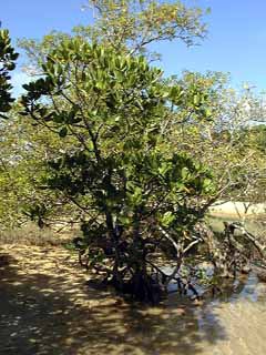 干潮時のようす。マングローブ林が分布しています。 川平湾