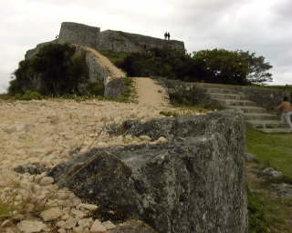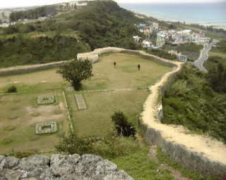 城の頂上からは中城湾,金武湾,太平洋方面が一望できます.城壁の補修工事を行っていました.