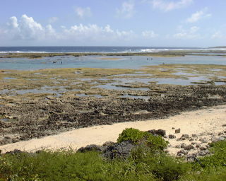 [地図]![]() スノーケリングに最適な海岸. 南部の糸満市にあります. 海岸は少し砂浜がありますが,あとは石灰岩地帯です.海の中も岩礁になっています. 本島内では数少ないたくさんサンゴが生きているところです.私は何ヶ所かスノーケルしてようやくここをみつけました.サンゴの種数,分布などは沖縄本島ではトップクラスだと思います. トイレ,自動販売機あり. 売店やシャワーはありません.食事は用意してからきましょう. バスで行く場合は晴明病院前下車,1.2kmです. 休みの日には家族連れなどでにぎわいます. 干潮時の写真です.干潮でも礁池ないの水深は1mくらいあるところもあります. |