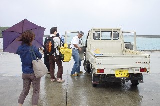 2003年11月17日~19日まで鳩間島に2泊3日![]() ![]() この日はあいにく石垣島から鳩間島へ向かう貨客船は悪天候のため欠航.朝,民宿のご主人がわざわざ電話で知らせてくれた.親切だ.そのときに西表からチャーターすれば何とか今日でも鳩間島にいけると聞いて,チャーターの手配を依頼した. 西表の船浦域も行きも欠航のため,大原に入り,連絡バスで上原のデンサー食堂に向かう.ただし,この場合でも船代は船浦まで取られる. 西表は2002年3月以来.前に来た時気になっていたこの看板が寂しげにいまでもあった.工事全盛のときには盛り上がったのかもしれないが,今となっては... ![]() デンサー食堂でバスを降りる.付近をうろうろしていると鳩間島に行きそうな女性旅行者もいた.しばらくすると車のおじさんが現れ,船が出る港まで行く.上原港からチャーターで1回5000円だが,5人以上は1人1000円.今回は計4名だったが1人1000円にしてくれた.感謝. 貨客船が欠航するだけの荒天で,小さい船は揺れにゆれる船長も今日はこわいなあ,と.おいおい大丈夫か.と思ったがなんとか鳩間島に入港.転覆したらどう避難するか?まで考えてしまった. ![]() 雨の鳩間島に上陸.軽トラの荷台に搭載され,島ヌ家ポッポへ. ![]() ここでは毎晩酒盛りが. ![]() ![]() 翌日,雨のやみまにシュノーケル.ウエットスーツを着たのでそんなに寒くはない.サンゴもけっこう見られ,天気の良いときは最高だな. 夕方,天気が良くなってきたので,散策に. 鳩間中森.この先には灯台.島は歩いて40分くらいで一周できる. 緊急用のヘリポートと広大な学校のグラウンド.裏に体育館の建設中だった. 夜,やしがにをみに連れて行ってもらった.夏には大きいものを捕獲して食べるそうだ. ポッポの主人は鳩間加奈子の兄.さんしん片手に歌声を披露してくれた. 最終日にして晴れ.今日は石垣経由那覇にかえる.貨客船は遅れて到着.1時間以上港で待ちぼうけ. 鳩間島に下ろされた荷物.建設資材とともに大量のアルコール類が.これはいったい何日分なのだろうか. この旅行の目次に戻る |