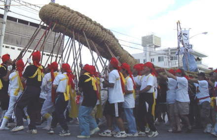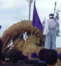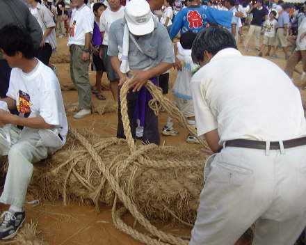 東西に分かれて綱を引きます.東西の綱がつなぎあわさせると同時に引き合いがスタートします.