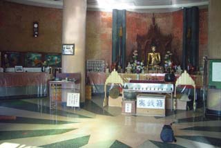 福岡県北九州の門司.関門海峡を見下ろす山の上にあります.かなりロケーションは良く,ミャンマーでパゴダかありそうな山の上にちゃんと作ってありさすが,と思います.ミャンマー僧も常駐している.日本の中のミャンマー.JR門司港駅から1240発のめかり山荘経由めかり行きに乗車.パゴダはめかり山荘(国民宿舎)の近くにあるので山荘で下車すればよいが,この経由は1日に数本しかなくて時間を合わせるのが大変だろう.利用する方は事前に西鉄バスのサイトで時刻表検索してから行くといいだろう. 本数の多いめかり公園で下車して徒歩で山を登るのも良いだろう.40分強で登れると思う. ![]() 門司港駅から西鉄バス.220円,約20分. ![]() ![]() 山荘前で降りると国民宿舎がある(レストランで食事してもいいね)その右側に下っていく細い道を降りていき,山荘の脇を進んでいくとすぐにパゴダが見えてきます.エントランスの手前には管理人室があって維持費として100円の拝観料を箱に入れるようになっています. 管理人さんと少し話をすると,せっかく来たのだからお坊さんと会っていけば?ということになり,僧院に案内されました. ![]() ![]() これがエントランス.お坊さんに「裸足になって方が良い?」とたずねると,靴脱がなくても良いと言っていました. 僧院の手前には戒律堂があり,中には仏像があります. ![]() ![]() 僧院は少し道の先にあります. ![]() ![]() この日はウーウィジャナンダ僧正とお話をしました.ミャンマーの話で1時間ほど.25年日本に住んでいるそうで日本語はとても堪能です. ![]() ![]() 本堂です.中には仏像があります.本堂の裏手には寝釈迦もあります.本堂内は土足厳禁でした. ![]() 振り返るととても眺めの良い立地です. ![]() ![]() ろうそく,お線香各10円です.ミャンマー式の鐘もありました. ![]() 中はミャンマーの写真が展示されています. ![]() ![]() 「お水をどうぞ」の寝釈迦もありましたので水をかけました.周りには日本らしい灯籠もあります. ![]() 本堂の裏に行くと寝釈迦があります. ![]() ![]() 一見しただけでは日本なのか,ミャンマーなのかわからないぞ.ここにいても日本にいるのかミャンマーにいるのか混乱してしまう不思議な空間だ.もちろん,風が吹くと塔先端部につけられている鈴のチリンチリンという音も鳴ってまさにミャンマー. 3時間ほど滞在.1610下山開始.終バスは無いので徒歩にて下山. 次 2004年12月 門司→東京 前 2004年12月 |